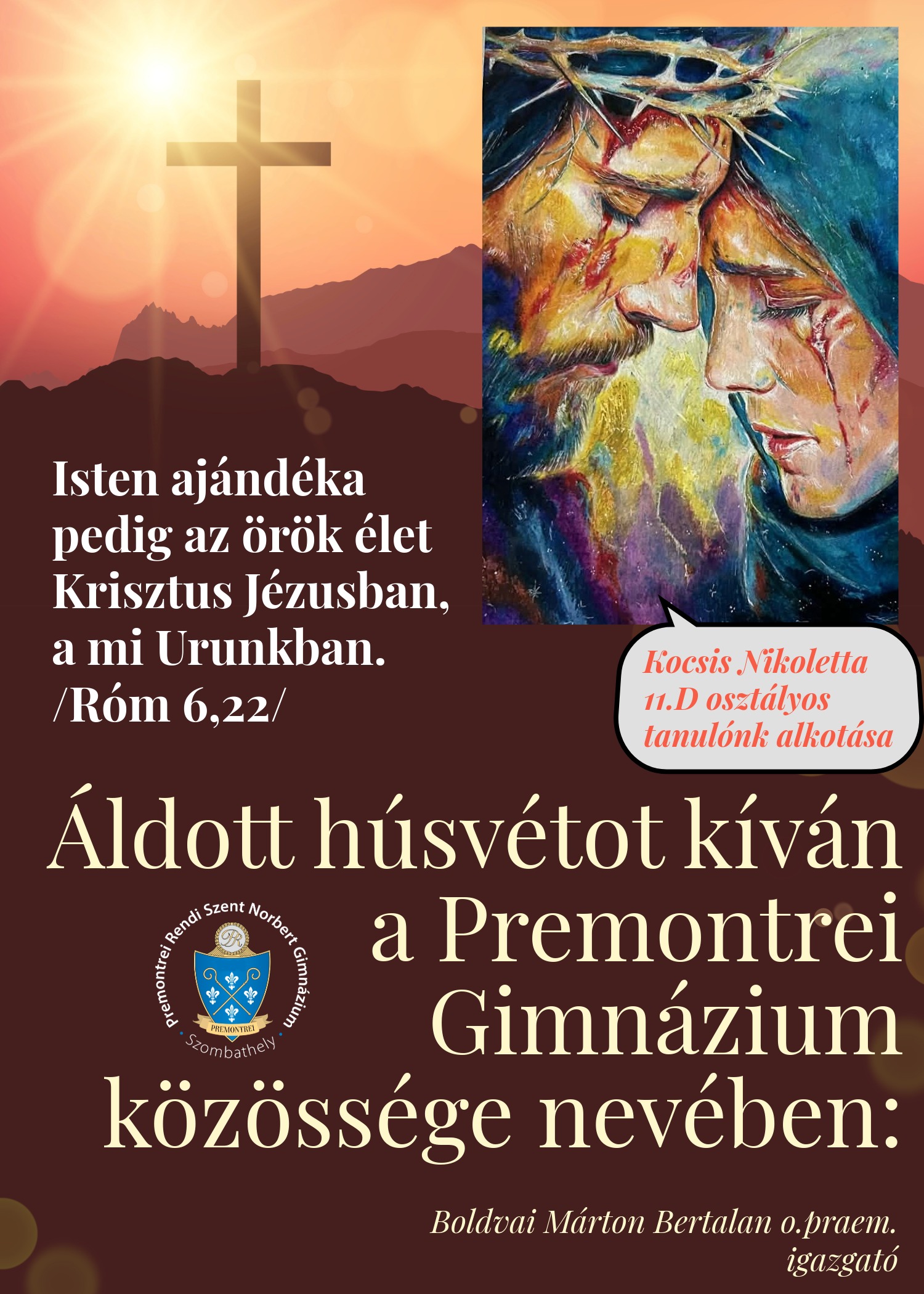 Áldott húsvétot kíván a Premontrei Rendi Szent Norbert Gimnázium diákjai, tanárai és igazgatója nevében:
